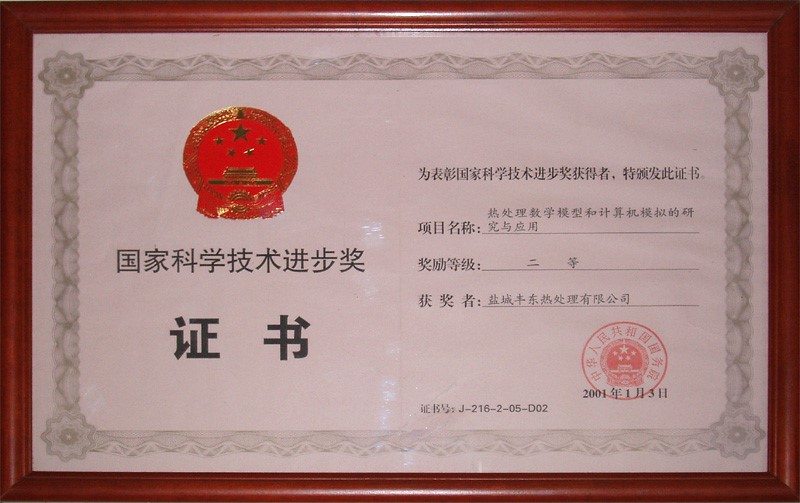 獲得熱處理行業(yè)最高獎項:國務(wù)院頒發(fā)的國家科學(xué)技術(shù)進(jìn)步二等獎